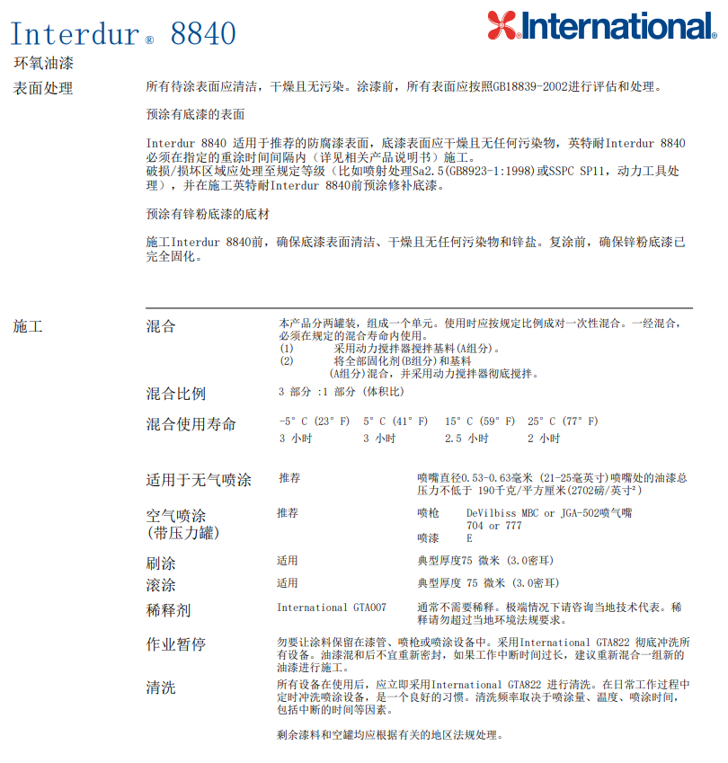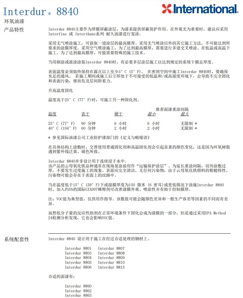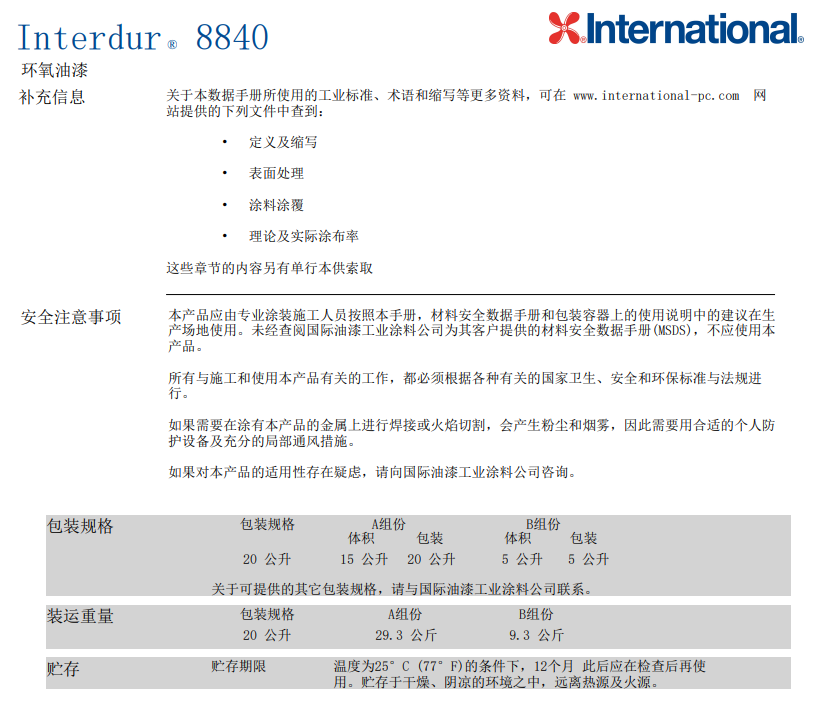阿克苏国际油漆厚浆型环氧漆Interdur 8840
