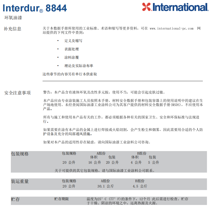 环氧油漆Interdur8844防腐涂料